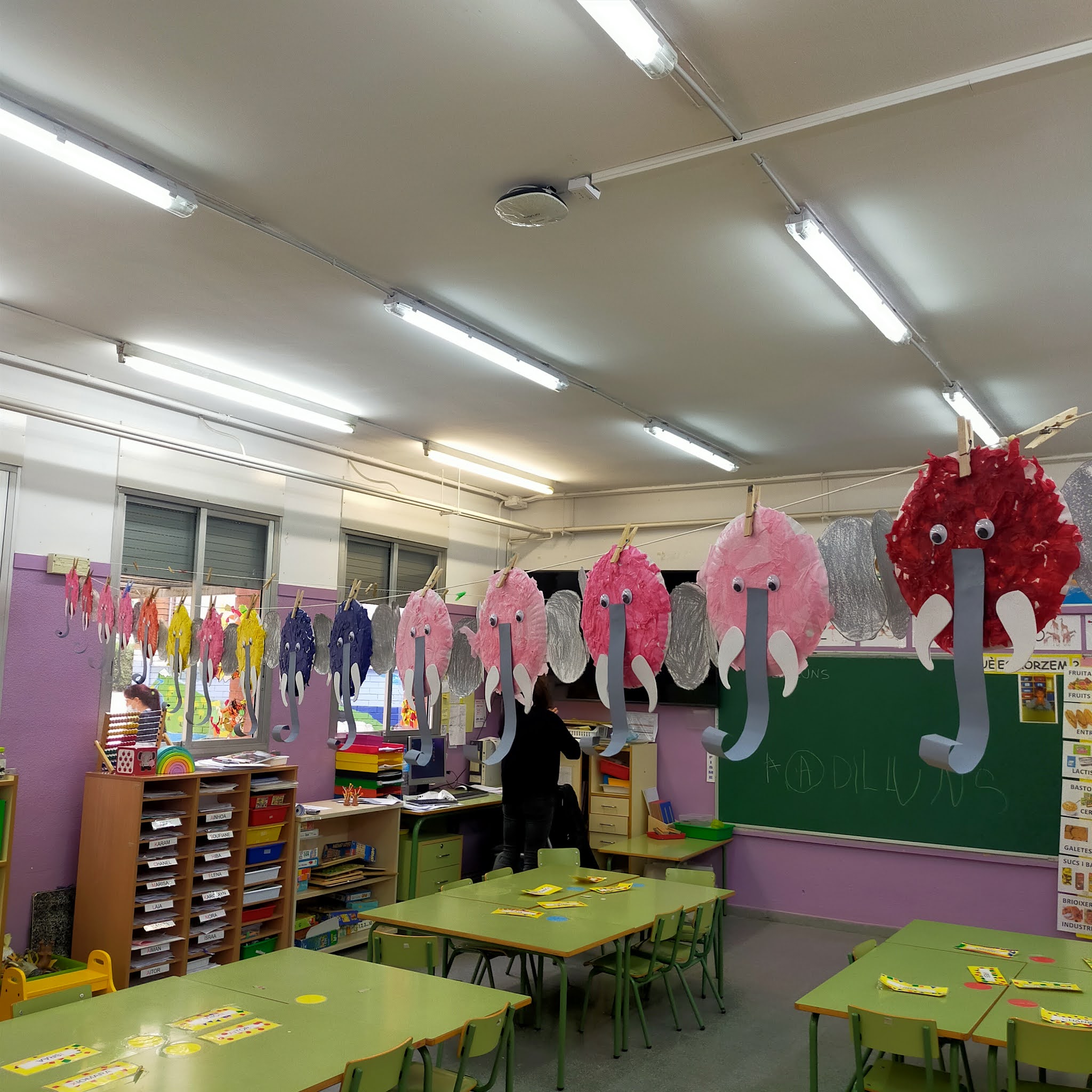 La classe de Petits 1 ja tenim nom, som la classe dels Elefants i les Elefantes. Aquests dies hem après com n'és de gran aquest animal amb una cinta mètrica i ho hem comparat amb la nostra mida. Ha estat una activitat molt interessant i divertida. També hem decorat la classe amb unes manualitats que hem realitzat i ha quedat ben bonica.
